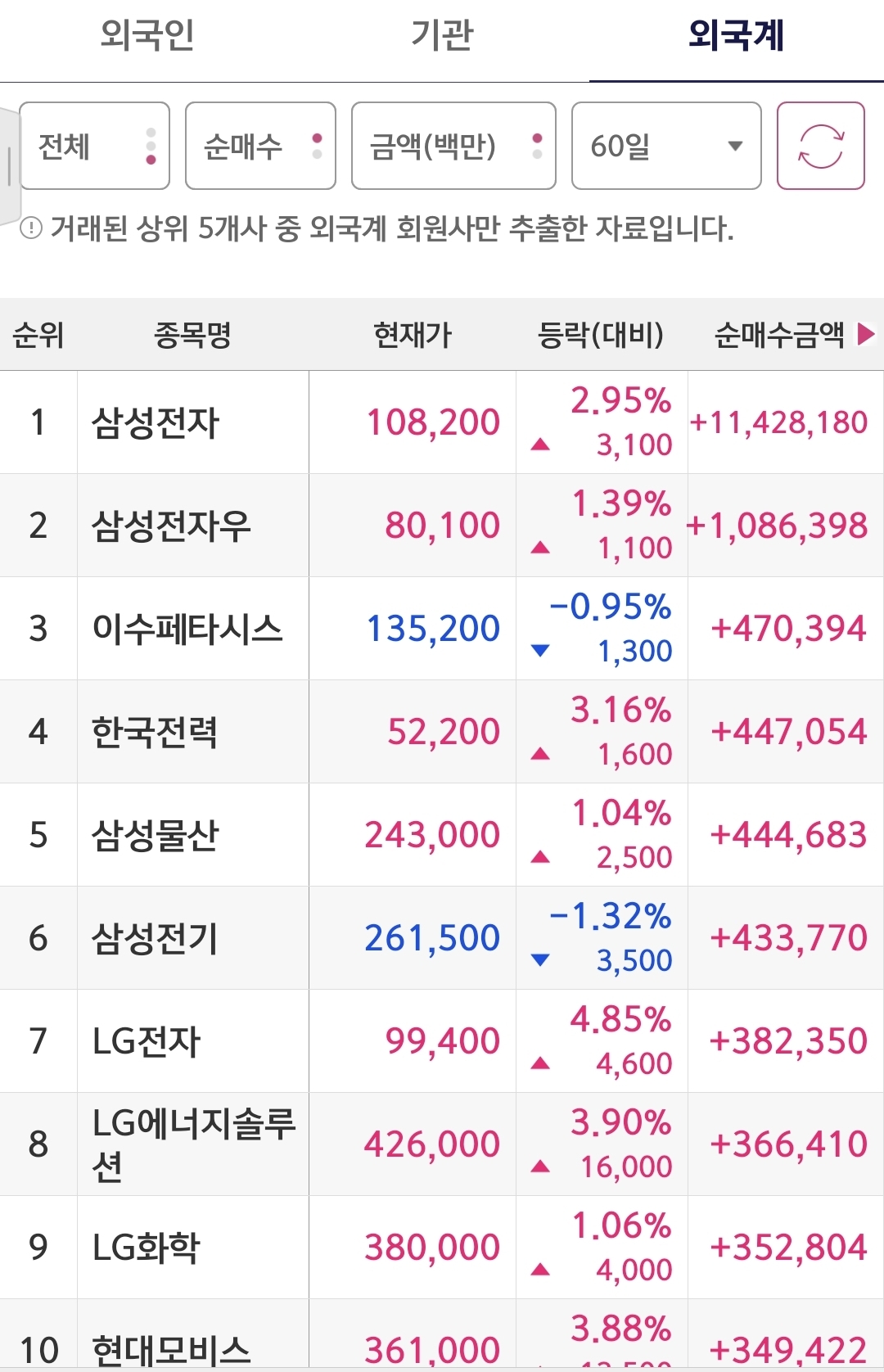 - • 순매수 교집합(5일↔60일): 삼성전자·LG전자·현대모비스 → 30%