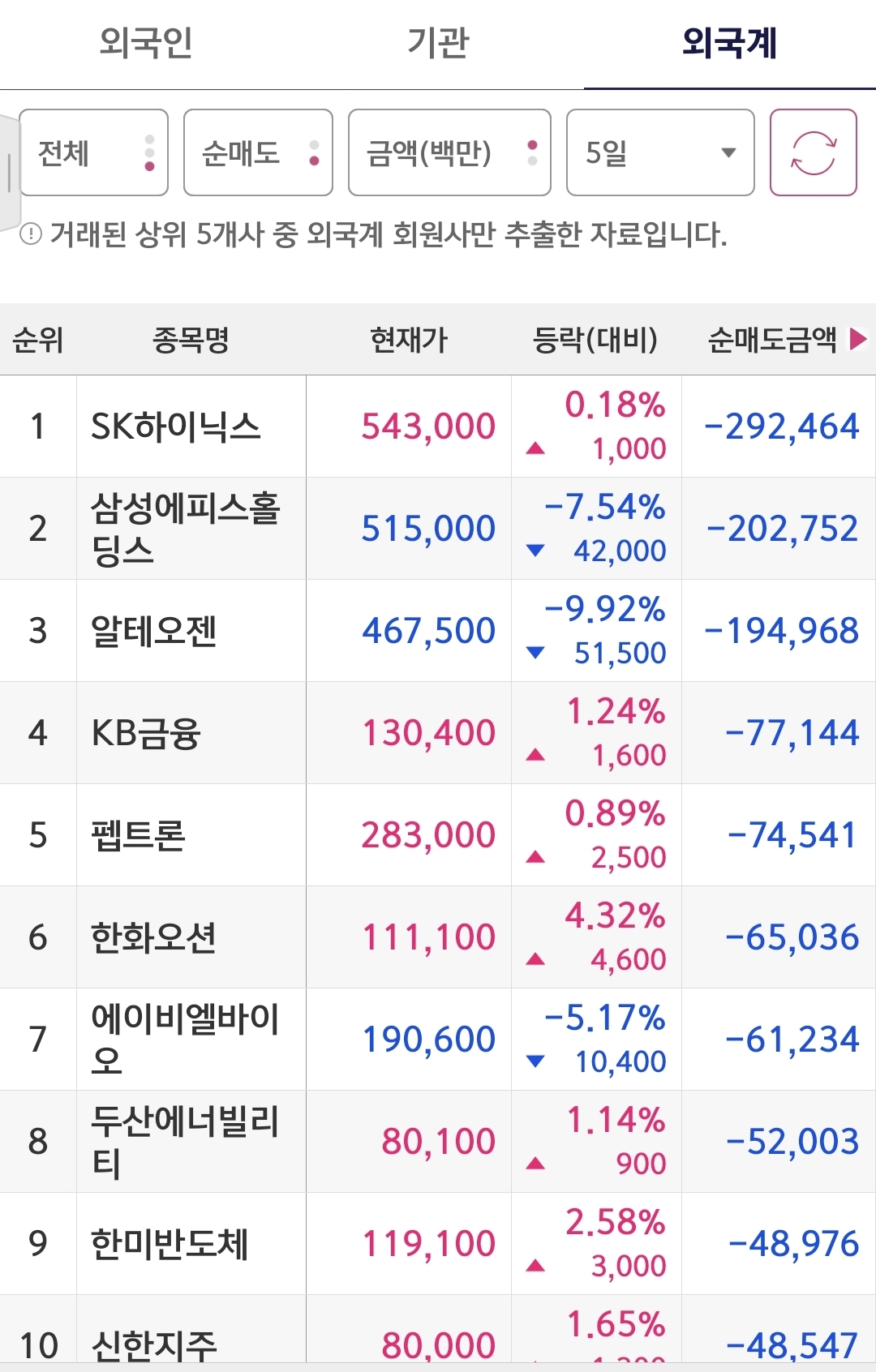 - • 순매도 교집합(5일↔60일): SK하이닉스·삼성에피스홀딩스·알테오젠·KB금융·한화오션·두산에너빌리티 → 60%